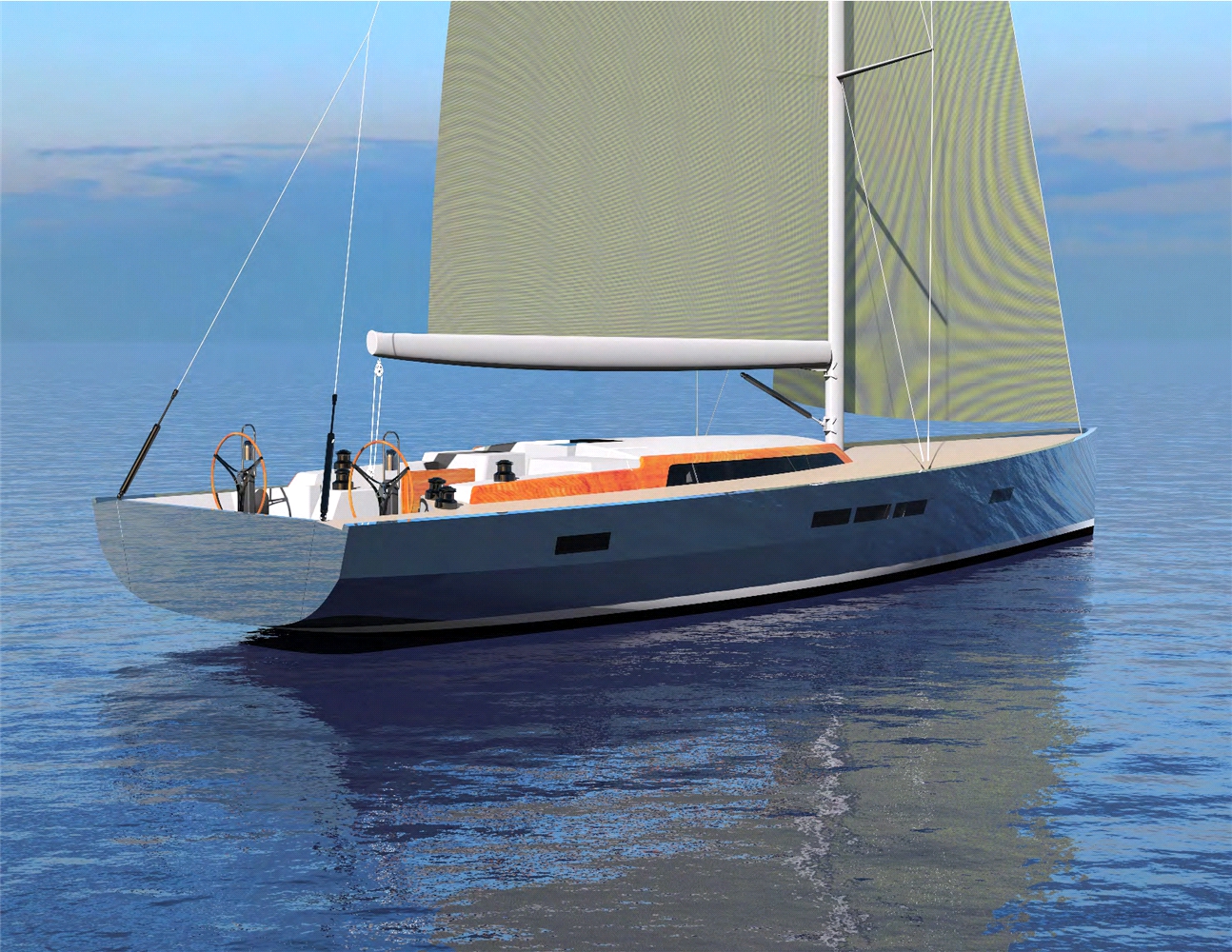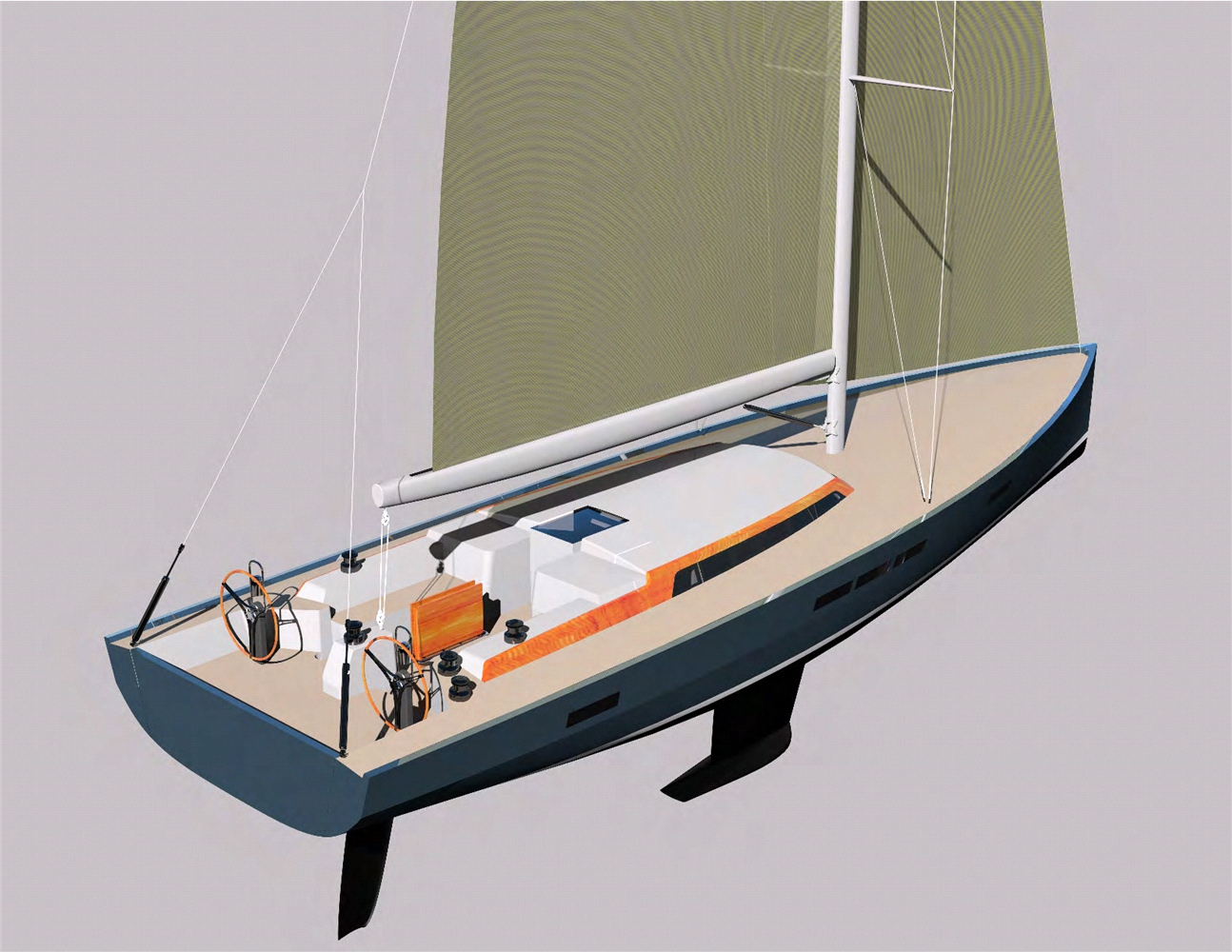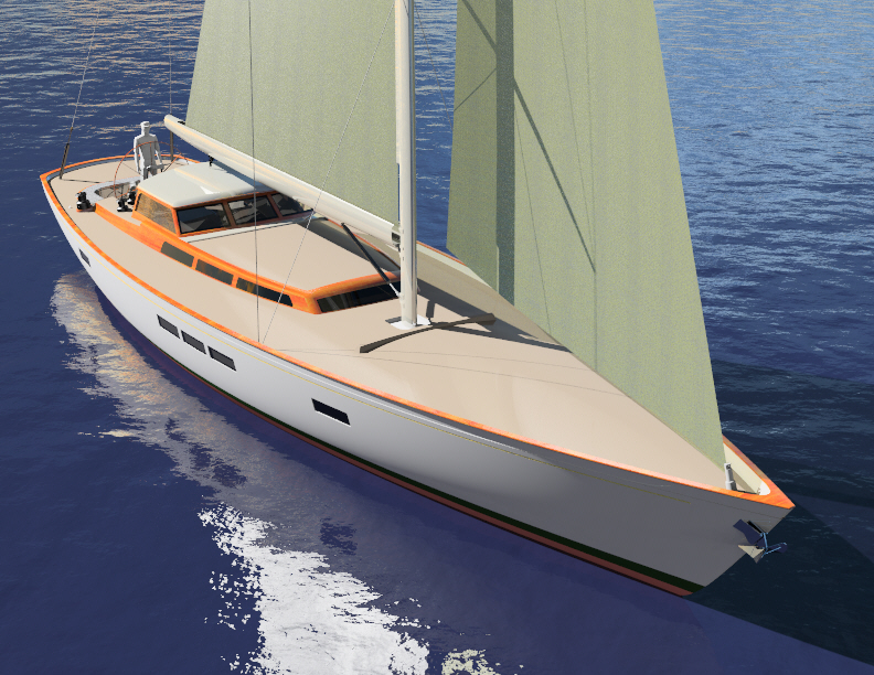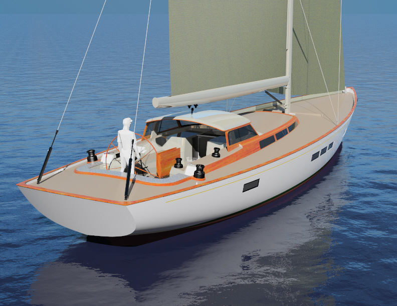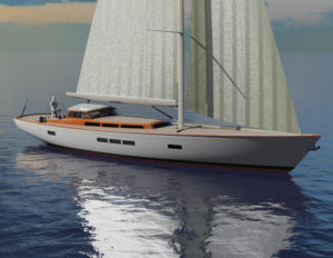 Here’s how the SoT game played out for this owner: The boat will be built entirely in carbon and foam composite, both hull and deck. She’ll be fast, roomy, safe and fun to sail. She’ll give him the convenience of a modern boat with equipment, amenities and sophistication like a stern tender garage. She’ll be raced in SoT or mainstream classes, though competing was way down his list of must-haves. And, she’ll give him the satisfaction of a beautiful interpretation of classic themes as he dinghies away from her mooring at day’s end.