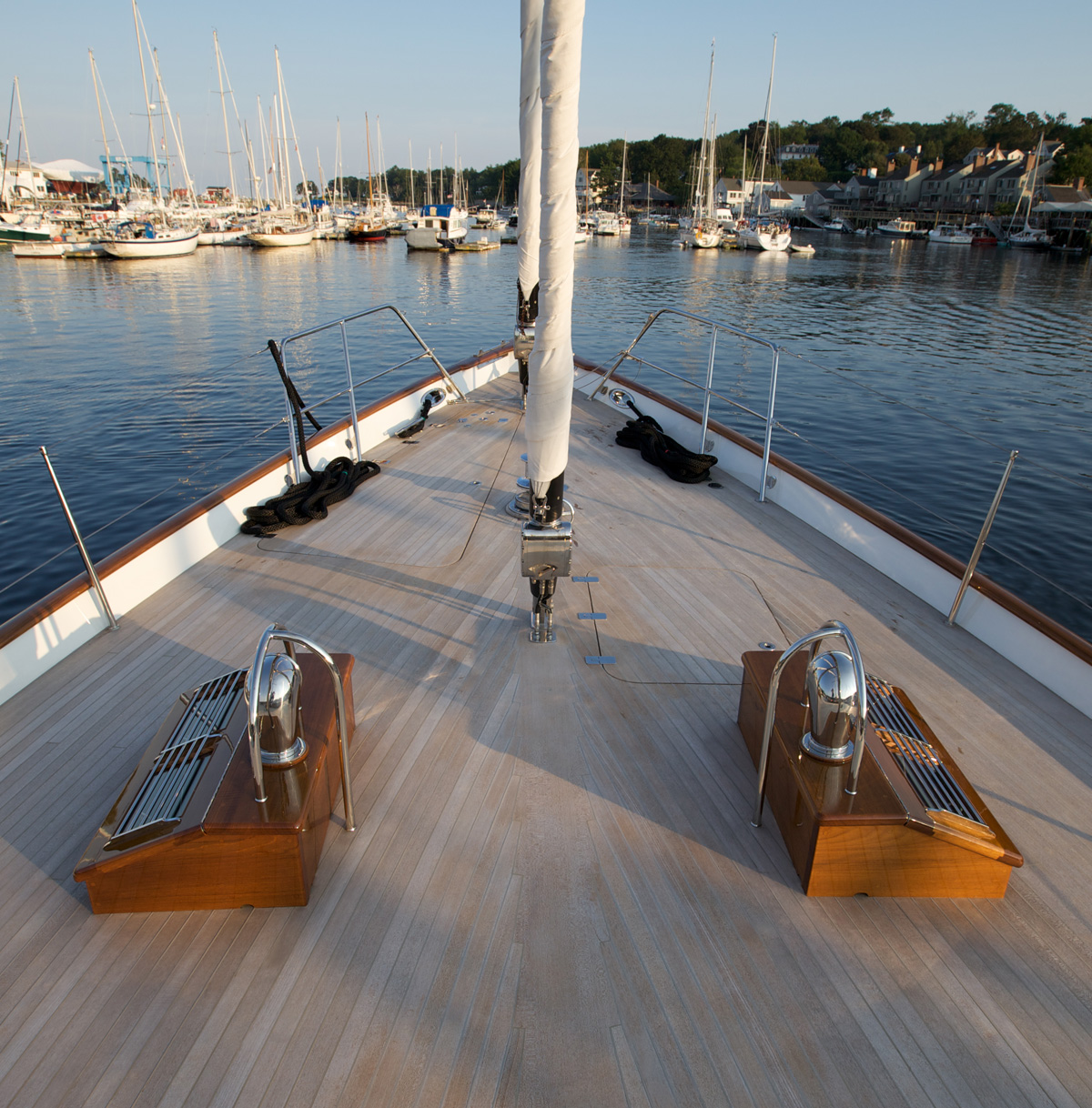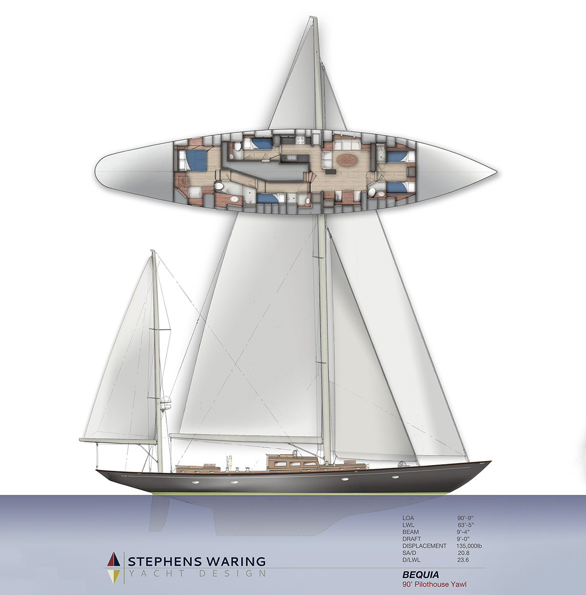 is a 90-footer straight out of the modern SoT idiom: She features a relatively modest beam, a classic sheer and a frankly throwback deckhouse. The idea is to refer to turn-of-the-20th-century cruising legends, mixed with the European influences of Fife and Baglietto. Also interesting here is the sturdy split rigged yawl and the clean open decks. The design has proved effective on the race course with several superyacht regatta wins under her belt. She’s also logged more 35,000 miles under her keel, including a Transatlantic passage and voyages to Sweden and Panama.