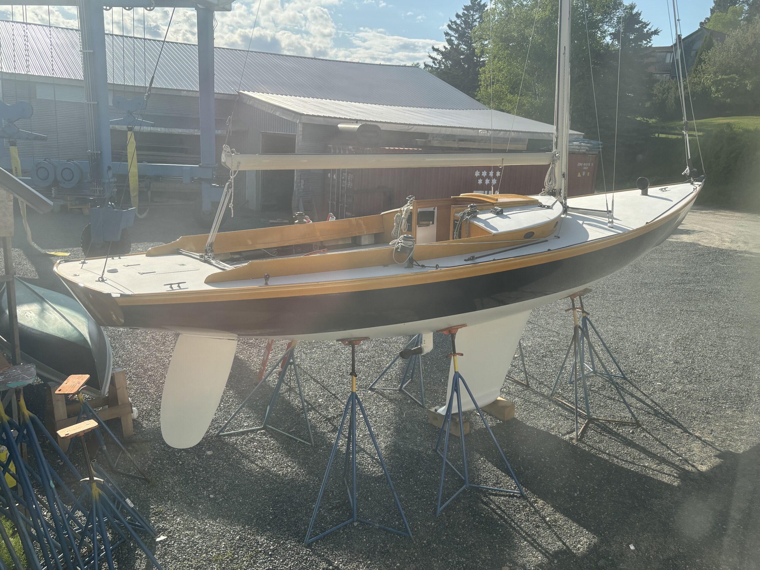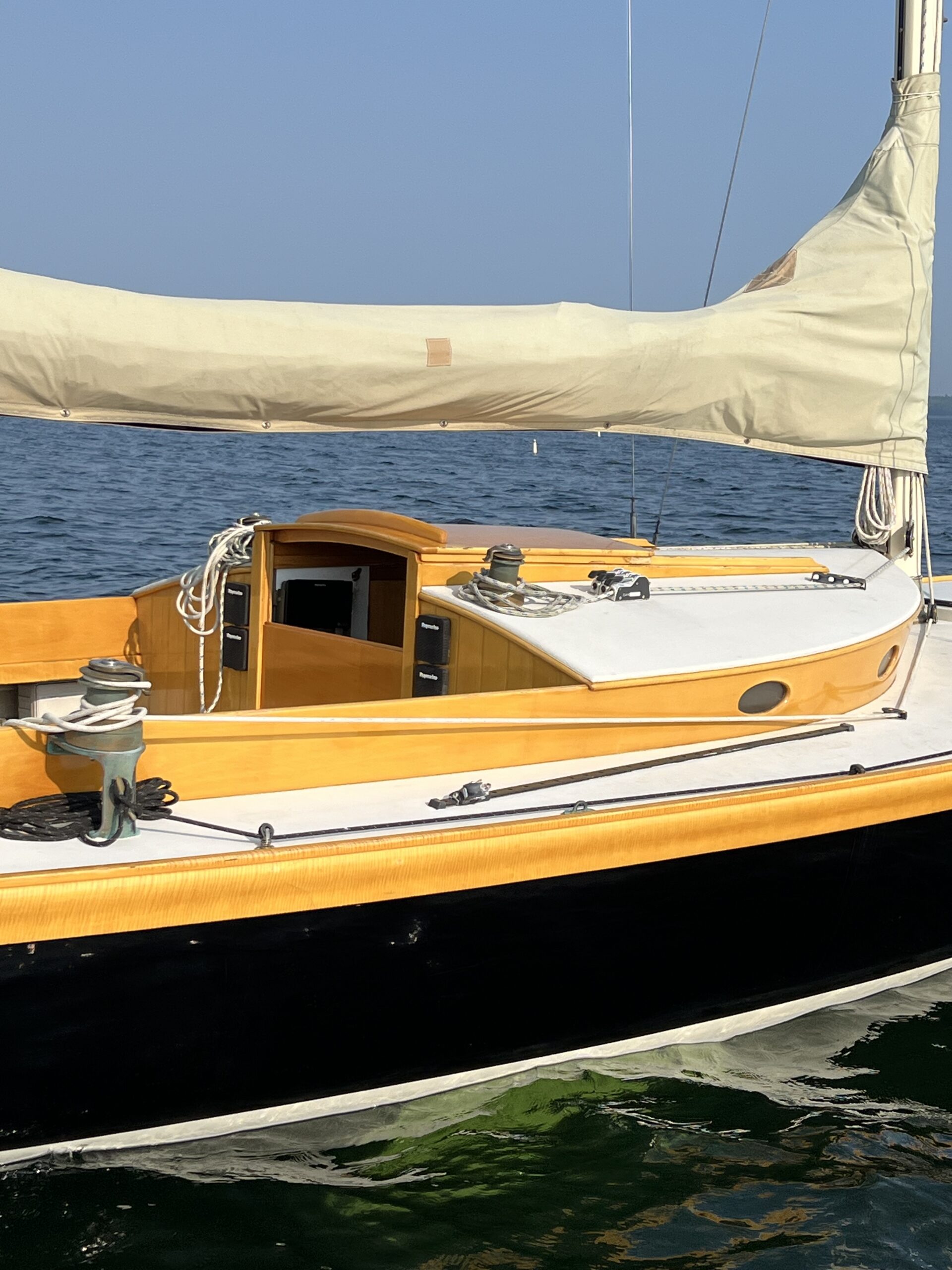 Her coaming and sheerstrake are finely varnished in the Herreshoff tradition, a nod to her classic heritage, while her underbody and rig are thoroughly modern—designed for those who appreciate both beauty and performance.