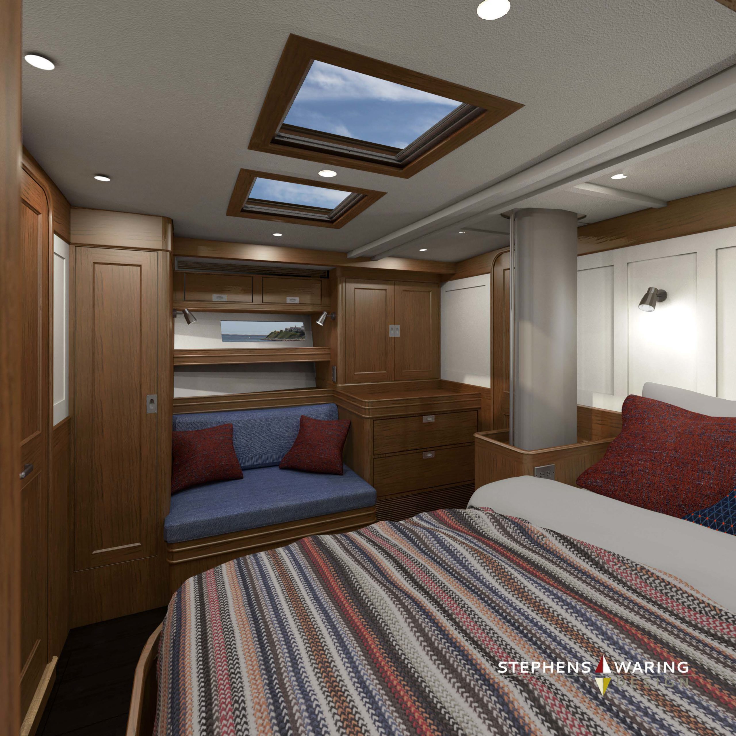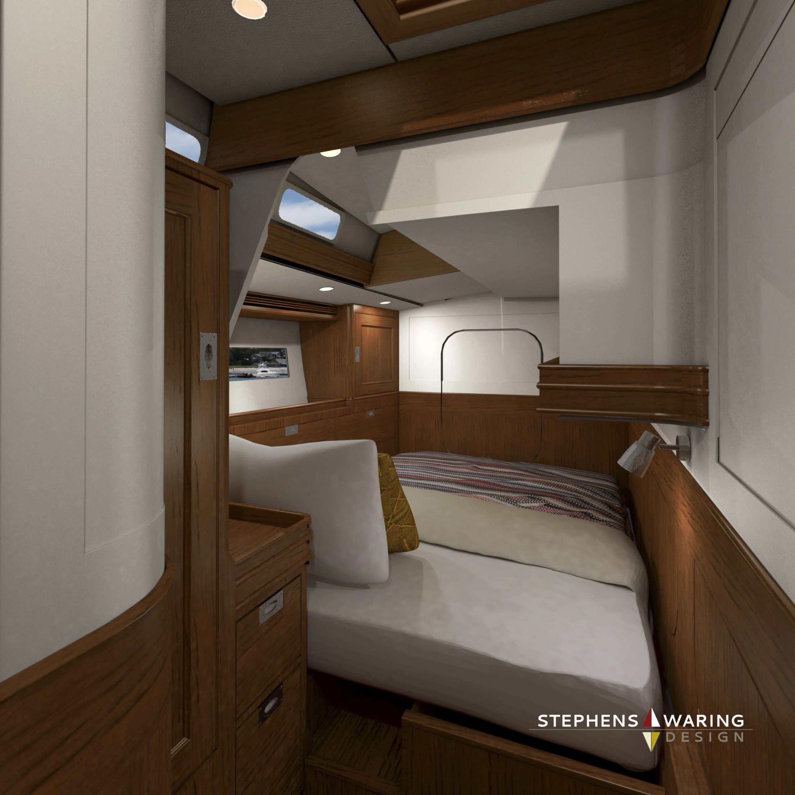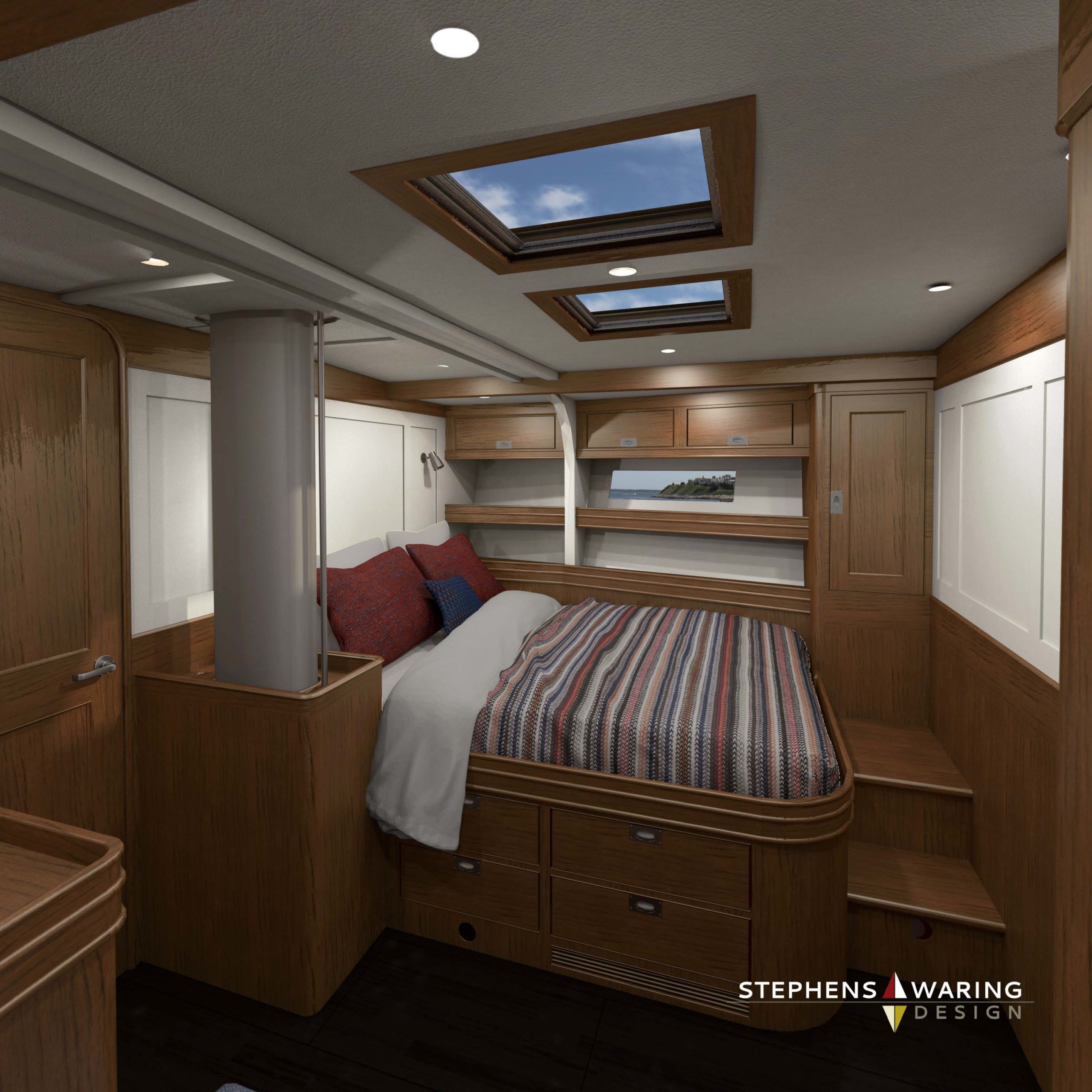 The design brief evolved from a three-cabin 57 to a four-cabin 68 to provide the option for a professional crew someday in the future. Photo credit J Betts