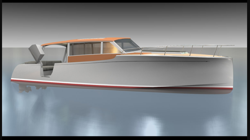 Our research in power boats startled us: We were surprised by how much design and engineering development room for improvement there was in the most basic premise of motorboats: Cruising in style. We started with the Downeast-inspired picnic yacht, but found it easy to widen the design idiom by weaving in distinct visual elements from the 1920’s and 30’s. Everybody seemed to feel the Art Deco movement. But only a few feel the lobster-boat movement.