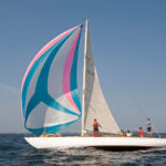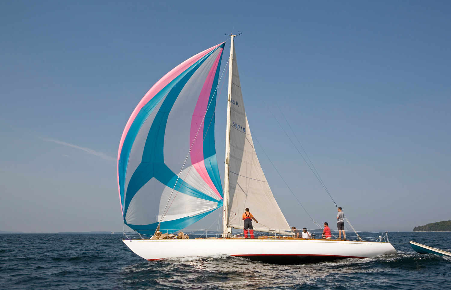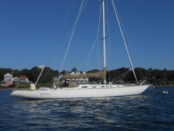 Surprisingly undocumented for a design this important — most searches for the “Vortex 55” lead to a hand mixer — these Knud Reimers boats were among the first group to sound the starting gun for the modern Spirit-of-Tradition narrative. Drawn in 1975, the Swede 55 was all about Reimers adapting a square-meter rule, popular for that time, to a mass-produced, fiberglass 53-foot day-sailer. Something like 35 were built between about 1975 and 1985, with names like Tiana, and Rosina. What matters today is, if you look carefully at the original design to the right, is how Reimers lays out most of the arguments of the Spirit-of-Tradition continuum: A traditional looking overhanging bow and stern, a slender hull matched to a modern keel and spade rudder — all with the most current rig and sails of the time. But what makes the design indispensable is how, back in the late 1980s Steve White, owner of Maine’s Brooklin Boat Yard, decided the Swede 55 would speak to his interests more if built out of composite wood construction. White had Reimers make a few tweaks for the build; and after a reported 7,000 man-hours of production (whoa!), a cold-molded wood layup of this modern-classic splashed into Maine’s Jericho Bay in 1990, christened as Vortex. We’ll save the ugly nitty-gritty of finessing the Spirit-of-Tradition principles into the constrained square-meter rule at the heart of this boat for another day. But still, we’ve sailed Vortex a lot. We’re in a few of these photos and videos, if you look carefully. And we can honestly report, of all the Spirit-of-Tradition boats we’ve sailed and designed, the Swede 55 is as pure a modern-classic as any vessel afloat. The Swede 55 may be from another era. But she still matters today.