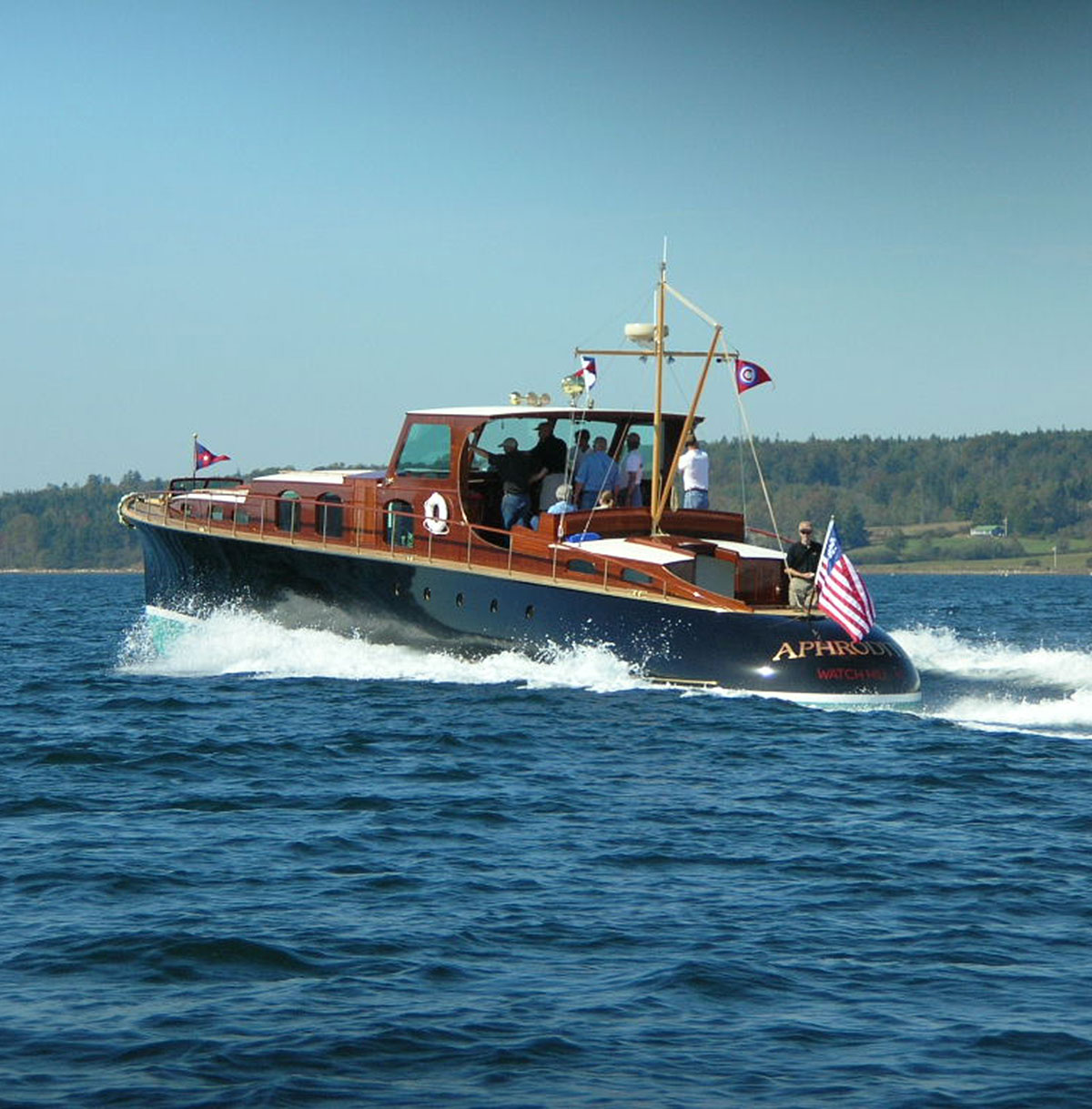 This mighty 1937 Purdy commuter yacht was completely restored at Brooklin Boat Yard. Aphrodite’s rehabilitation shows how traditional design and technological innovation each have their place on the water. With redesigned propulsion and steering systems, new tanks and plumbing systems, and completely revamped interior, she is perfectly matched to her owners’ flawless tastes. The result of this collaboration is a thrilling glimpse at what yachting was like in the 1930s—with all the comforts of today.
